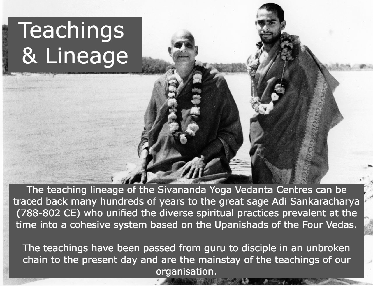The teaching lineage of the Sivananda Yoga Vedanta Centres can be traced back many hundreds of years to the great sage Adi Sankaracharya (788-802 CE) who unified the diverse spiritual practices prevalent at the time into a cohesive system based on the Upanishads of the Four Vedas.